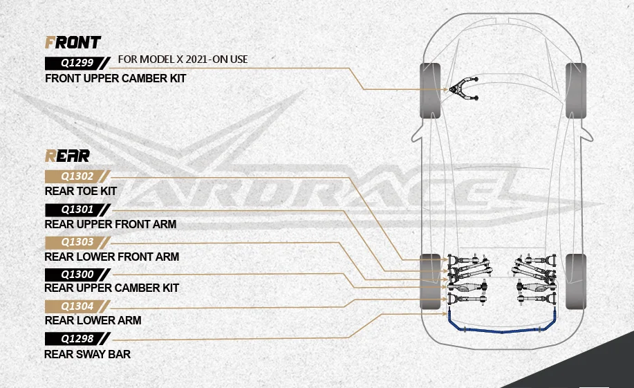 | Задний комплект регулировки развала | Q1300 | Регулируемый | 2 | С шаровой опорой | Model S / Model X 2021-On |