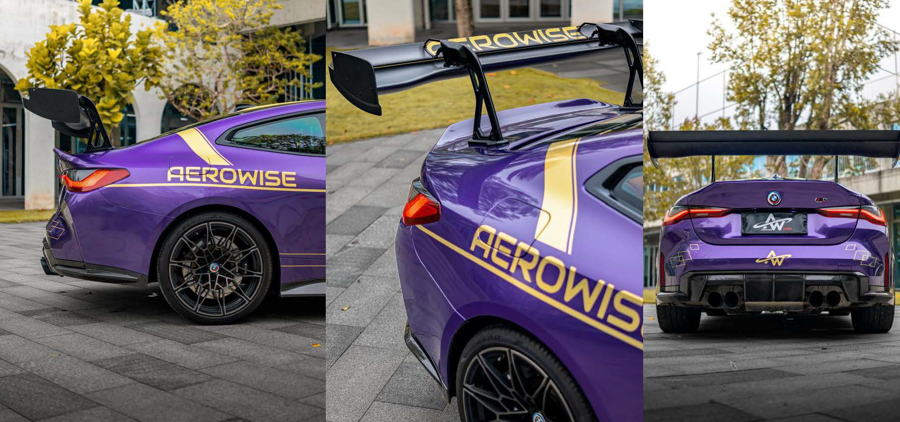 Торцевые пластины — облегчённые, с переменной кривой поверхностью. Нижняя часть отклоняет высокоэнергетический воздушный поток от задних колёс, задний вырез снижает индуцированное сопротивление вихрей. Комбинация «внешнее обтекание + прорезь» уменьшает влияние турбулентности и улучшает общую эффективность антикрыла в поворотах.