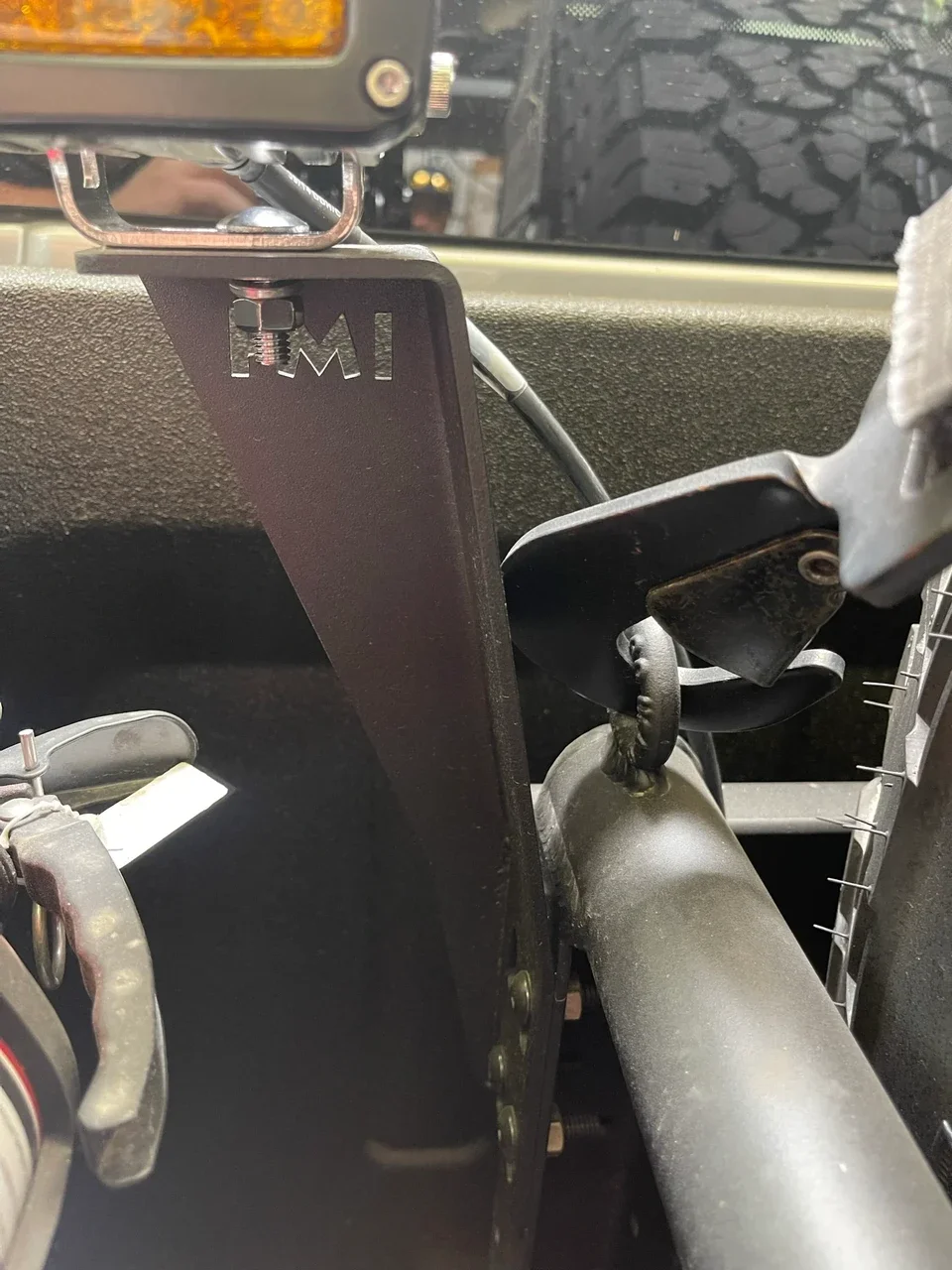 Кронштейны (правый и левый) согнуты и приварены для соответствия существующим отверстиям в органайзере кузова. Изготовлены из низкоуглеродистой стали и сварены методом MIG для долговечности. Покрыты текстурной порошковой краской черного цвета. Крепятся с помощью 4 болтов с каждой стороны для обеспечения отличной устойчивости.