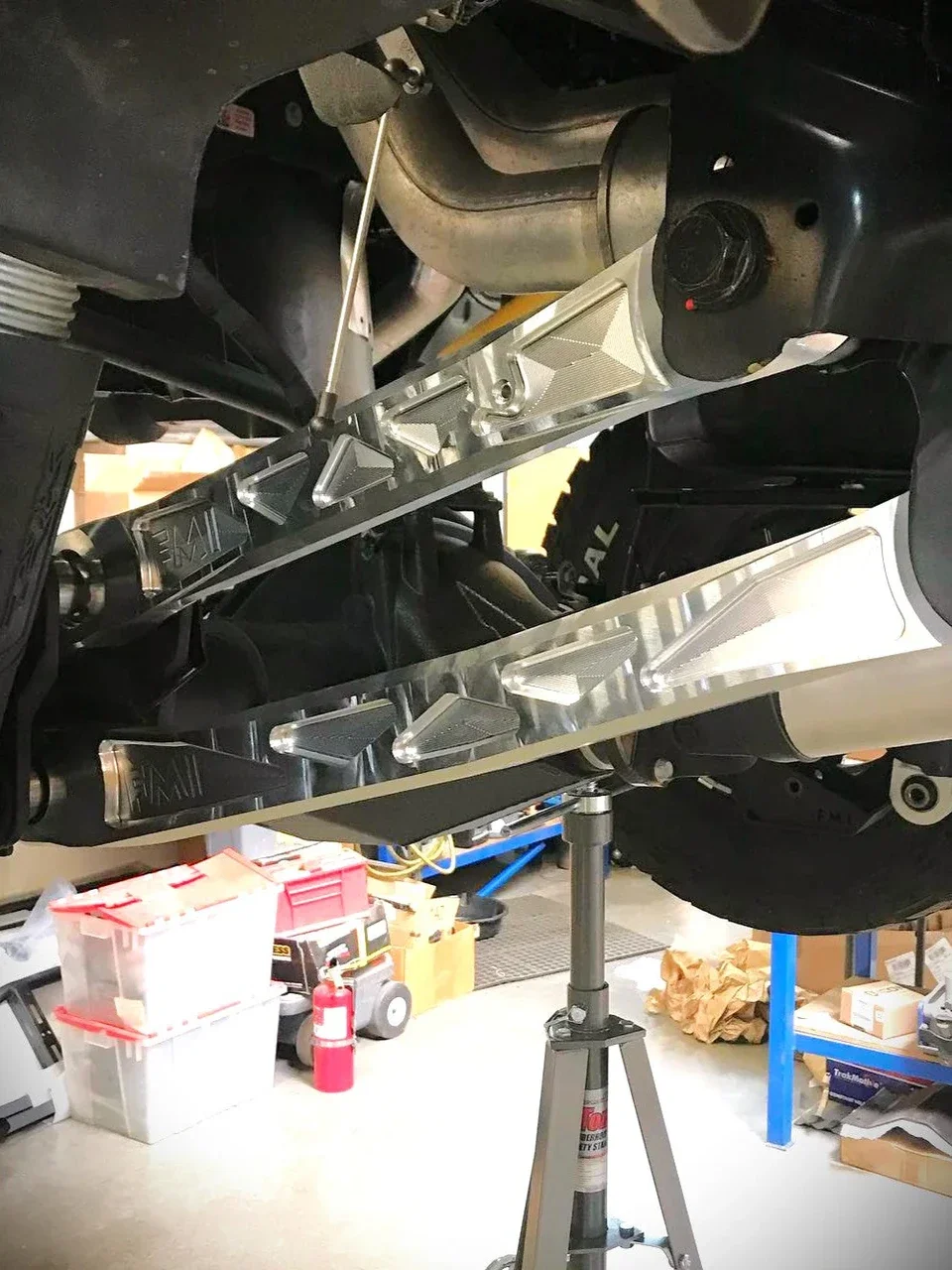 Верхние рычаги из алюминиевой заготовки с проставками для шаровых шарниров из нержавеющей стали 17-4. Этот комплект использует универсальные шарниры (Uniballs) FK диаметром 1 дюйм для максимального качества и прочности. Индивидуально обработанные проставки из нержавеющей стали 17-4 разработаны для установки в штатные места крепления. Передние крепления также оснащены демпфером из уретана (Urethane wobble stopper), чтобы удерживать рычаги в правильном положении.