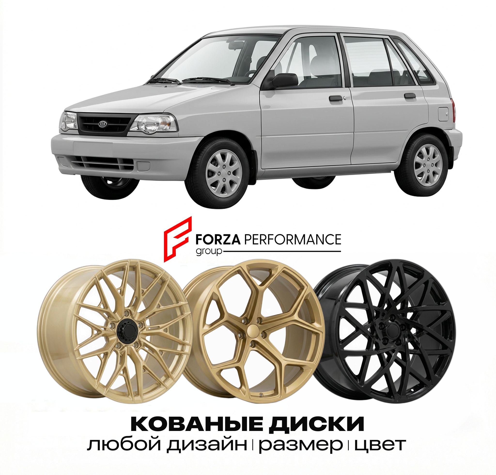 Мы изготовим кованые диски премиум-качества для Kia Pride в любом дизайне, цвете и параметрах.