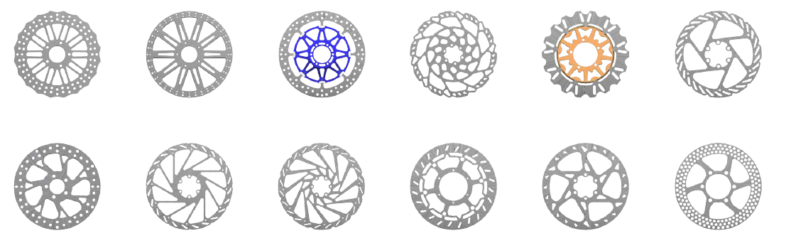 - Плавающие роторы: Состоят из двух частей — стального внешнего кольца и легкого алюминиевого центра. Сконструированы для превосходной эффективности торможения.