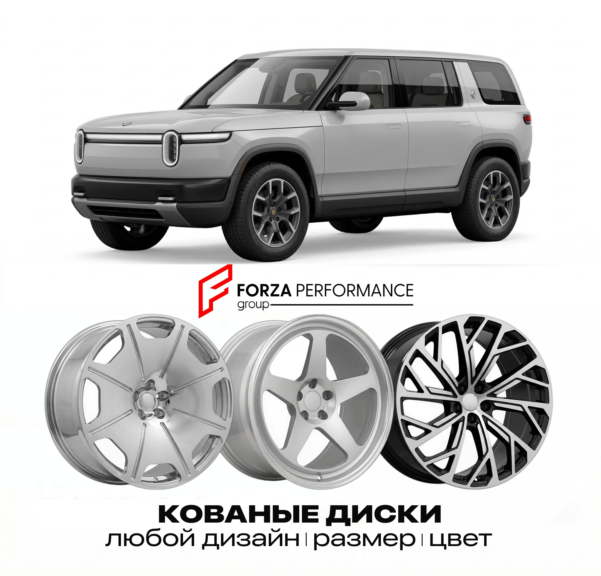 Мы изготовим кованые диски премиум-качества для Rivian R2 в любом дизайне, цвете и параметрах.