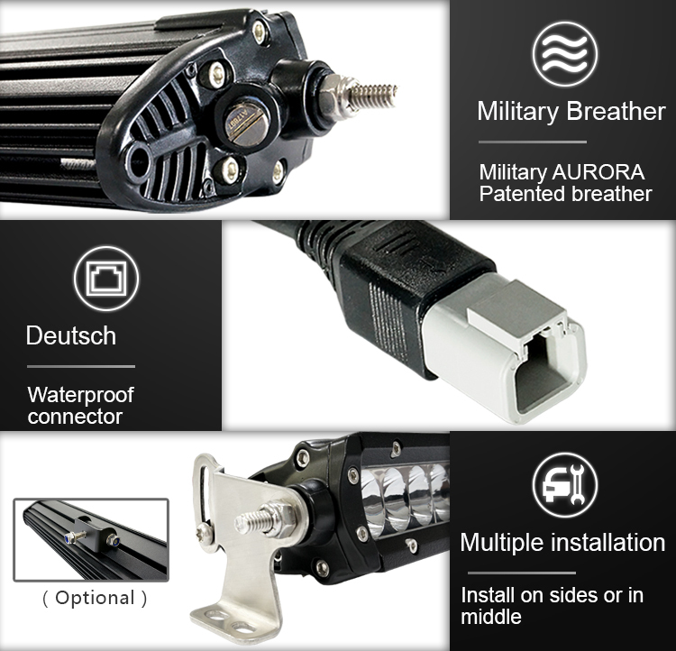 Максимальная защита: Фары Aurora полностью соответствуют уровню защищённости IP69 — полная защита от пыли и водонепроницаемость при погружении. Продукция также соответствует военным стандартам КНР GJB 150 и США MIL-STD-810.