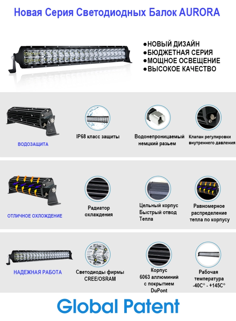 Максимальная защита: Фары Aurora полностью соответствуют уровню защищённости IP69 — полная защита от пыли и водонепроницаемость при погружении. Продукция также соответствует военным стандартам КНР GJB 150 и США MIL-STD-810.